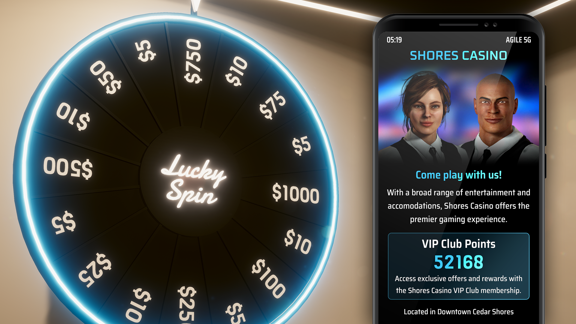 Pick out a new ride at a local car dealership, refresh your wardrobe, connect with friends, and relax after work at the casino, club, or in the comfort of your own home.