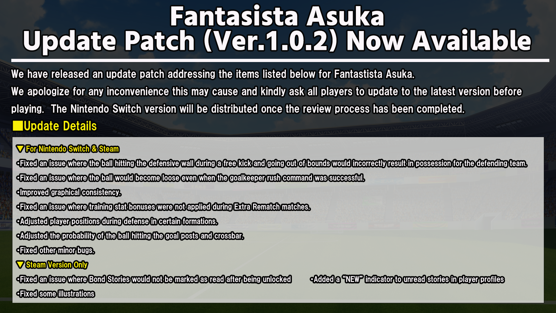 Step into the thrilling world of Fantasista Asuka, where you become the coach of an eccentric women's soccer team! Experience fast-paced matches filled with unique gameplay mechanics and unlock a diverse roster of players, each with their own captivating stories. With a blend of tactical gameplay and charming character designs, this game promises an unforgettable journey from underdogs to champions!