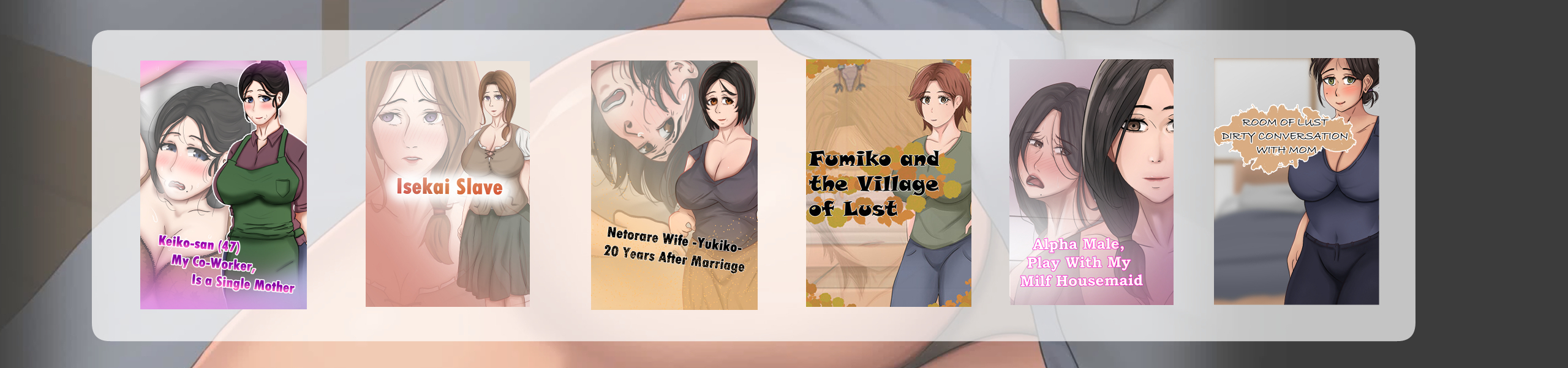 An adult visual novel game, "Kitagawa Yuko" (39 years old), depicts a single mother who lives alone with her son, "Kitagawa Hiromi" (20 years old). Her husband ran away, leaving her burdened with debt. Then the relationship between mother and son crosses the line due to accidents and circumstances.