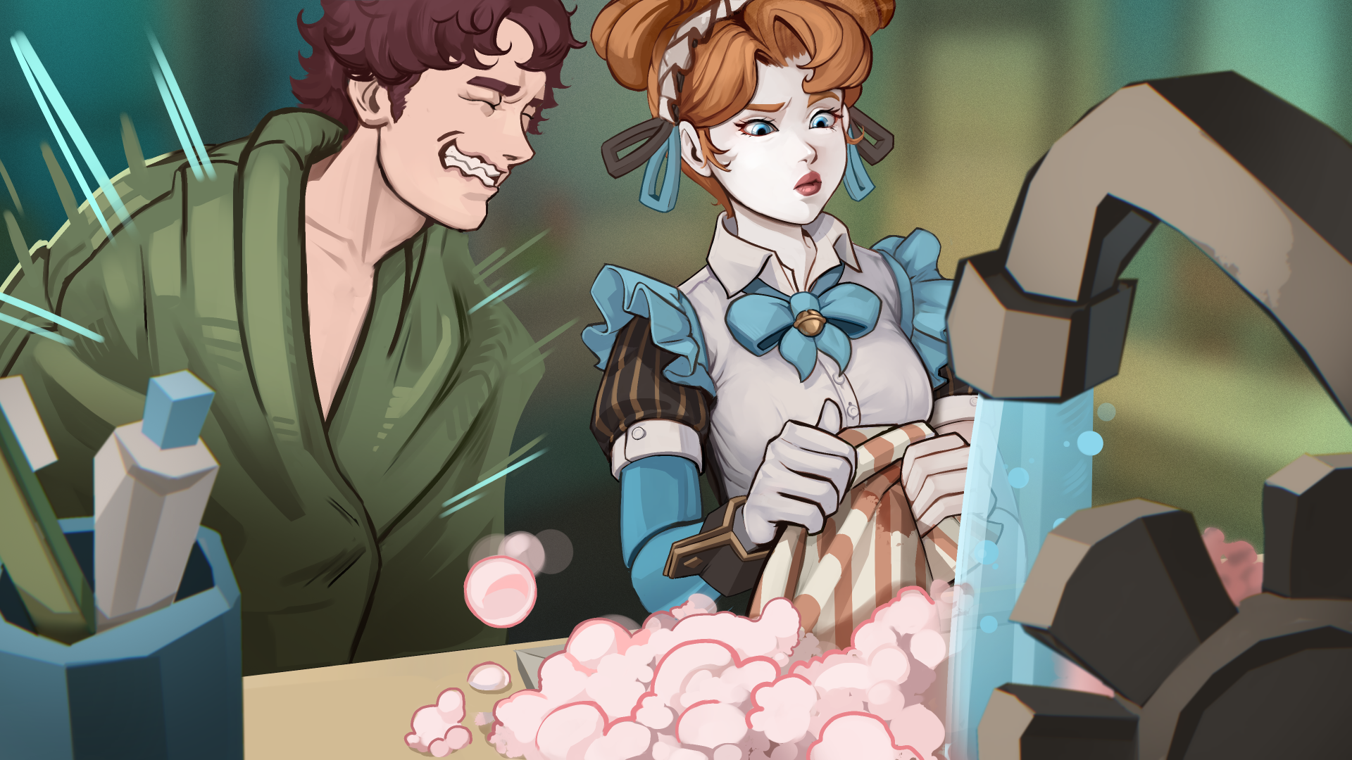 The dynamics of control and dependence between characters suggest elements of BDSM.