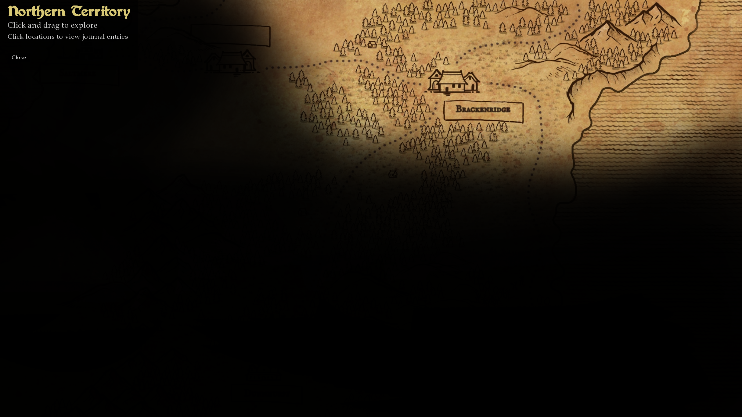 The journal system that exists in the game has gotten a major overhaul for this upcoming release. One of the things I had always wanted to add in the game was a map that would update as you progress through the story. I managed to work on a mapping system that fits the theme of the game and also is able to expand as the story progresses. With a fog of war style system, the map will slowly be uncovered as you unlock certain areas based on the story and your choices. The map is fully interactive with you being able to click and drag it to explore unlocked areas and also click on locations to open their journal entry page. Main cities and locations are labeled on the map, while smaller locations might just be displayed as simple icons. When areas are uncovered through the story choices there will be a notification to let you know and the map will also center on new or current areas.