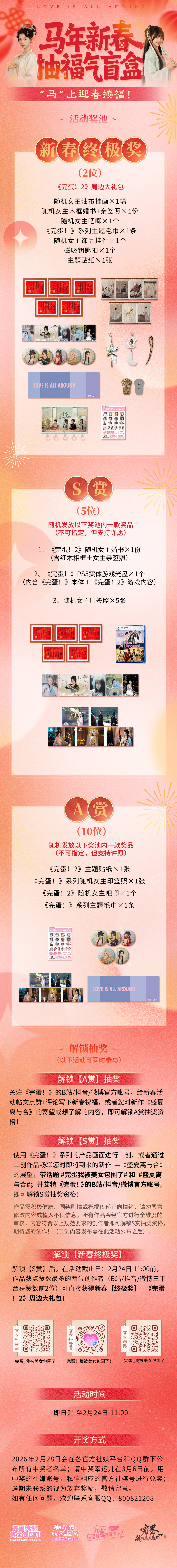 除了“新史低”特卖活动外,《完蛋!》系列还给大家带来了B站、抖音、微博三平台同步的福气盲盒抽奖活动,快来沾沾喜气,一起迎春接福!