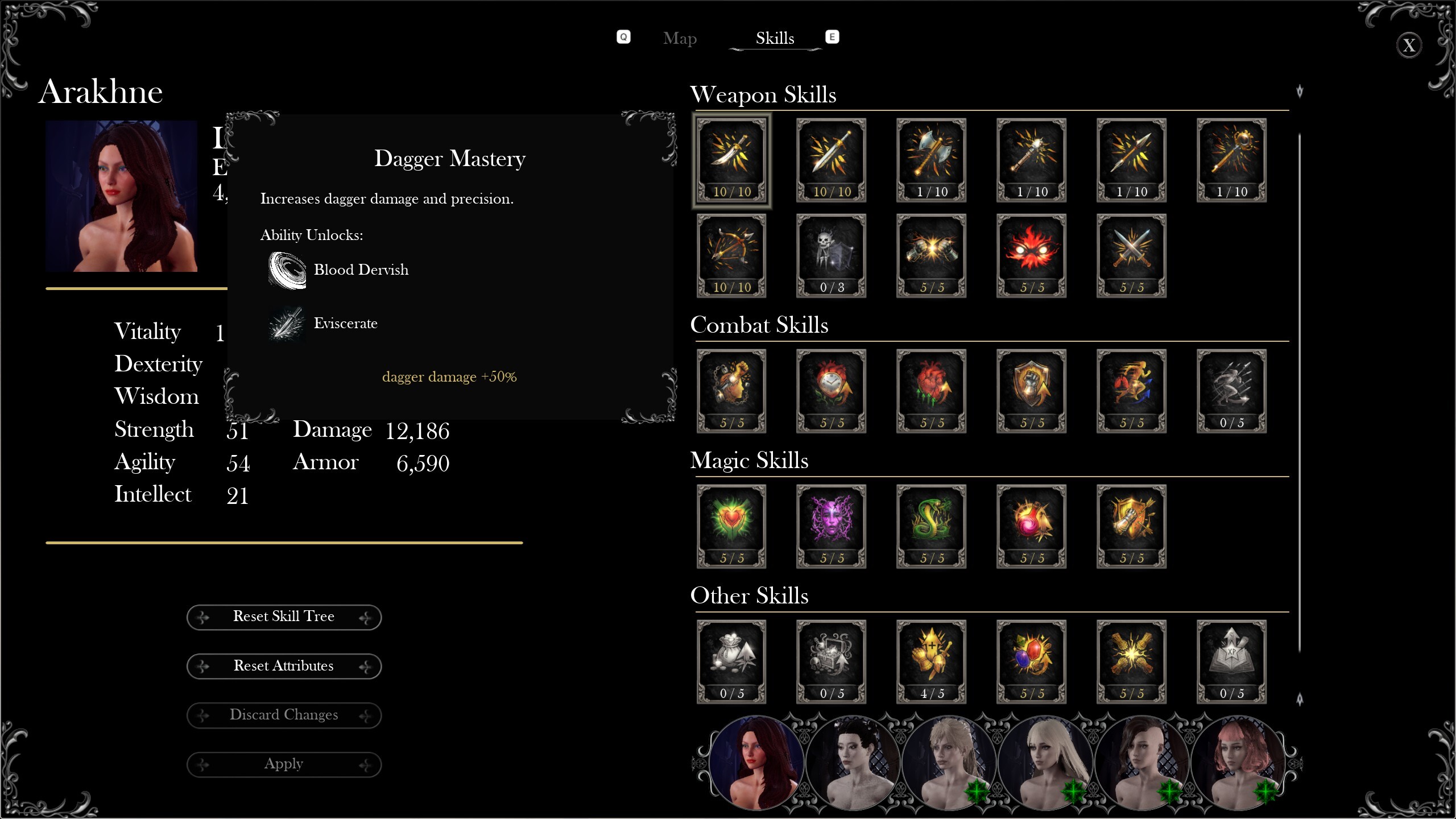 Spells still need testing and refinement (Venom Storm, Doom Shroud and Goddess Grace) and all other skills implemented exception of Byzantine Charm (better vendor buy/sell), Amazonian Rage (party damage) and Matriarch's Gift (XP gain)