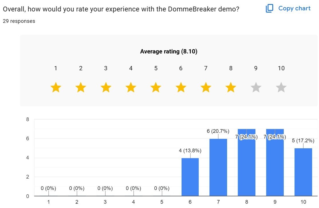 Some of it is even useful! The Next Fest Demo went live earlier this month, even though we technically missed the Next Fest, so our feedback Google form has been collecting data. First off, the feedback so far through the form, forums and personal messages has been very positive and that's been great to see. We are aware, of course, that only the people who liked the demo enough to finish it and fill in the form are going to be represented there, but other sources of feedback have also been very positive. Combined with the fact that this was literally the least sexy/exciting part of the game, being the build-up, we assume it's somewhat fair to extrapolate the received feedback to an overall player impression. So let's take a look first at some of the polls: