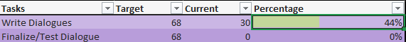 My progress tracker in the future will be based on these cards. So the completion percentage will depend on how many dialogues I've written. (The image is a sample btw, I've not actually written 30)