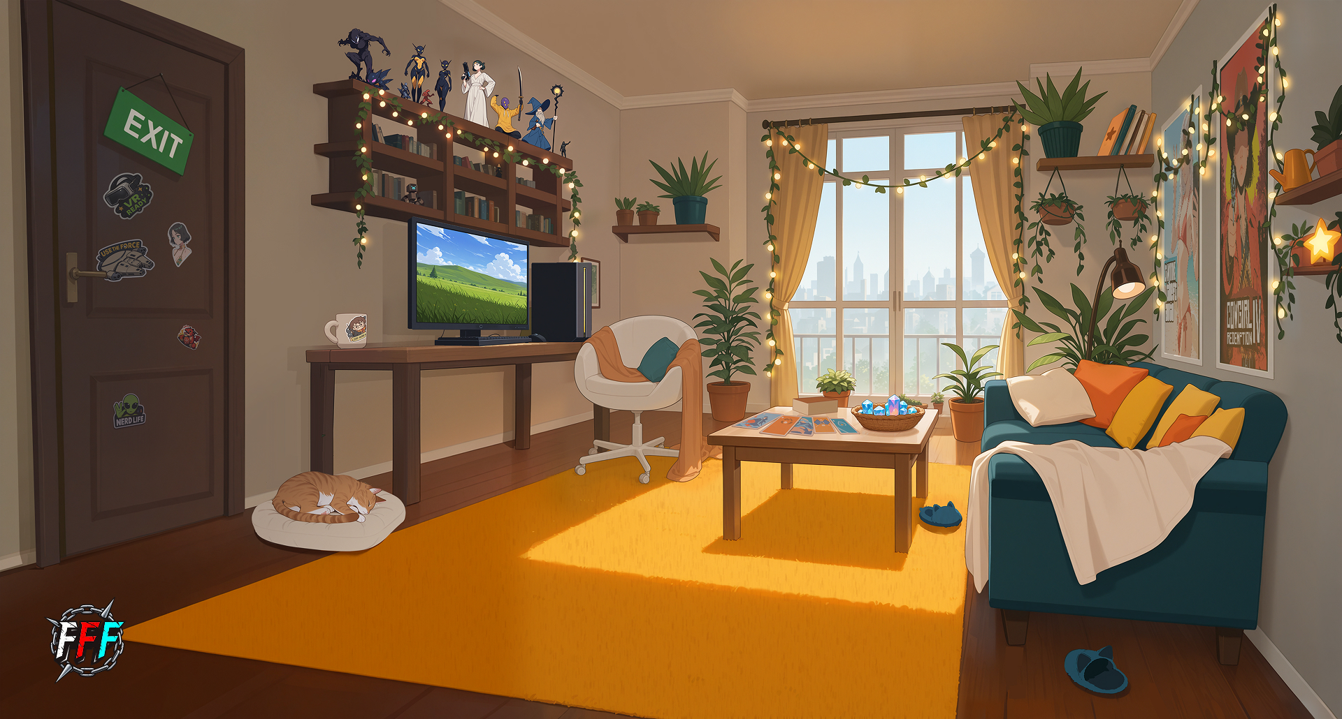 We are also preparing the background for the apartment hub, where players will need to interact according to the storyline. For now, it looks like this, but we will add to it later: