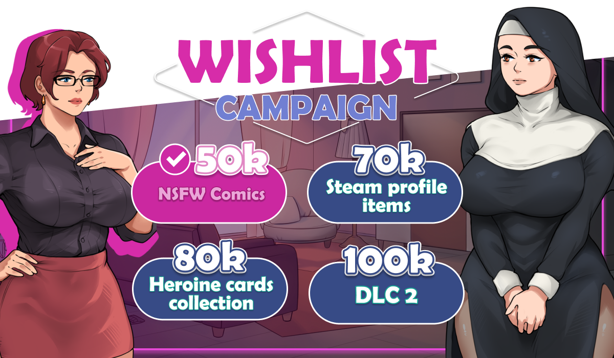And we can’t help but share another piece of great news. Not long ago, we passed the milestone of 60,000 wishlists, hitting the goal of our wishlist campaign and unlocking a special bonus in the form of an NSFW comic. You guys are simply the best!