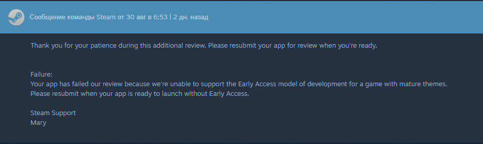 Steam moderator did not approve our game for Early Access...