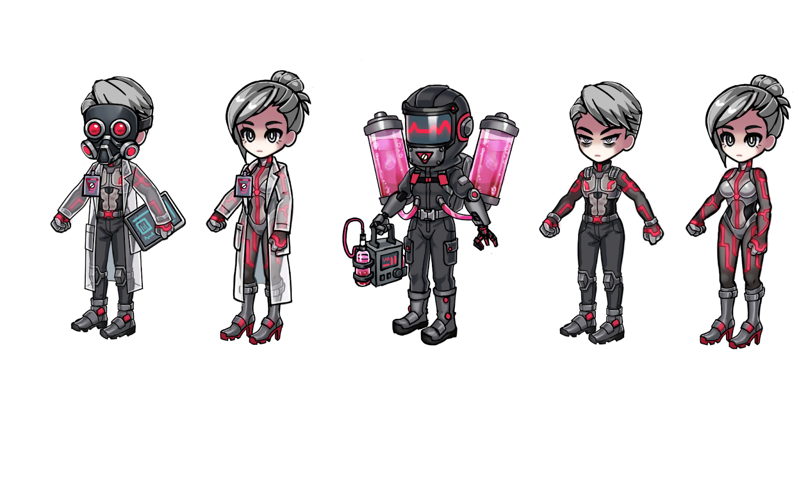 The enforcers on the train will be a different variation and we wanted to make that difference a bit more clear visually so Aine started working giving them pink glow for the helmet: