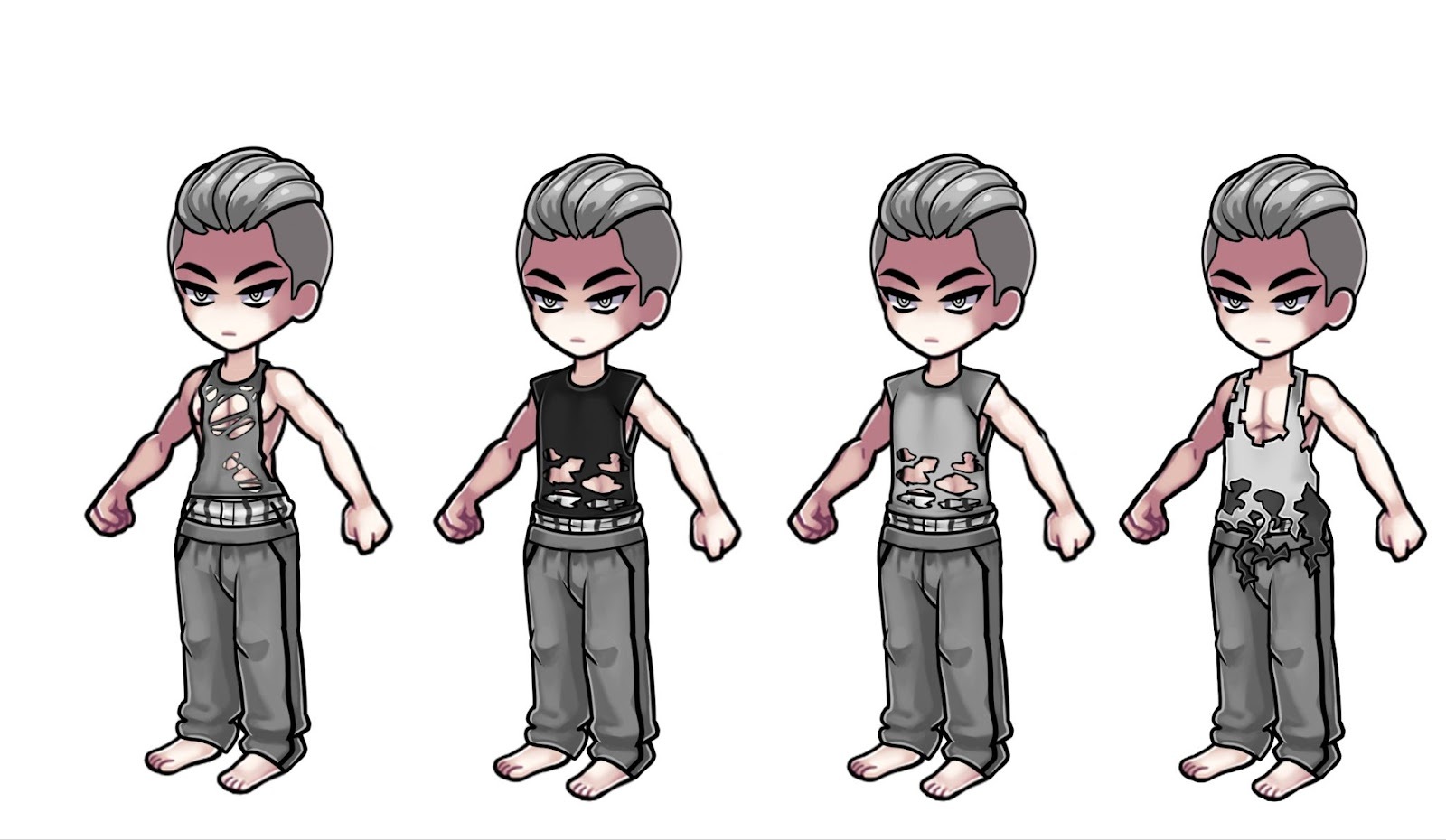 Completed the hoodie's base, made some beat-up hoodie variants: