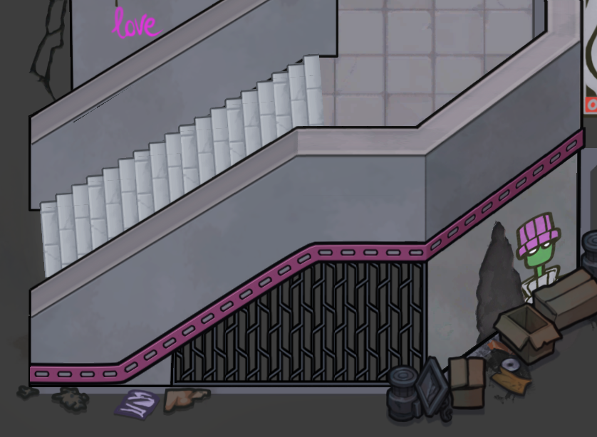 Corner filled with decals, trash and other things to make it look more grungy and lived in: