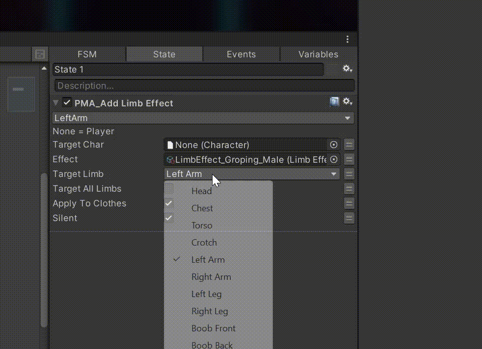 Massive quality of life improvement for adding limb effects. There's a cooler dropdown at the top now, which is filtered based on what effects the selected limb effect supports in the first place. So the team doesn’t have to guess anymore and we can make booby games even faster!