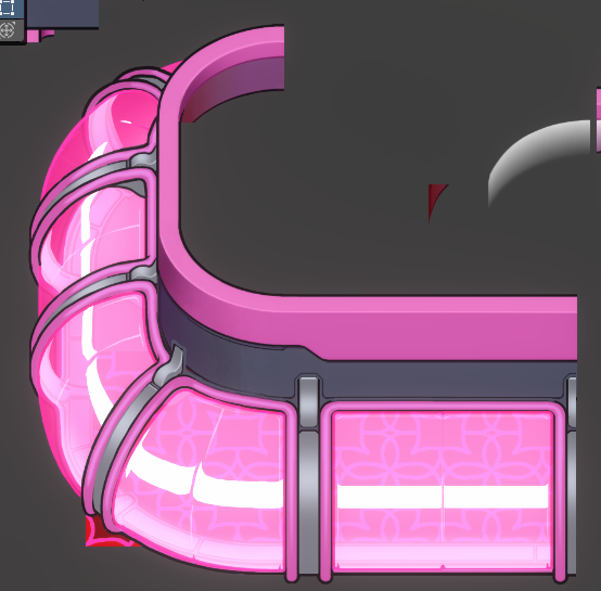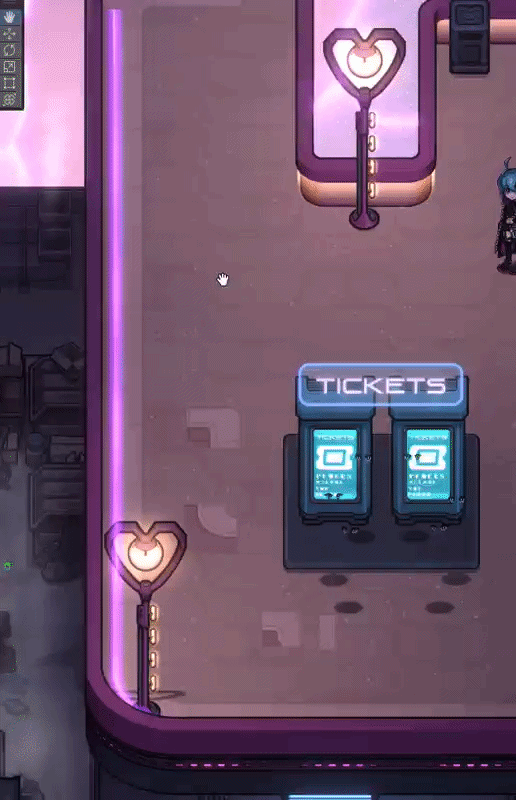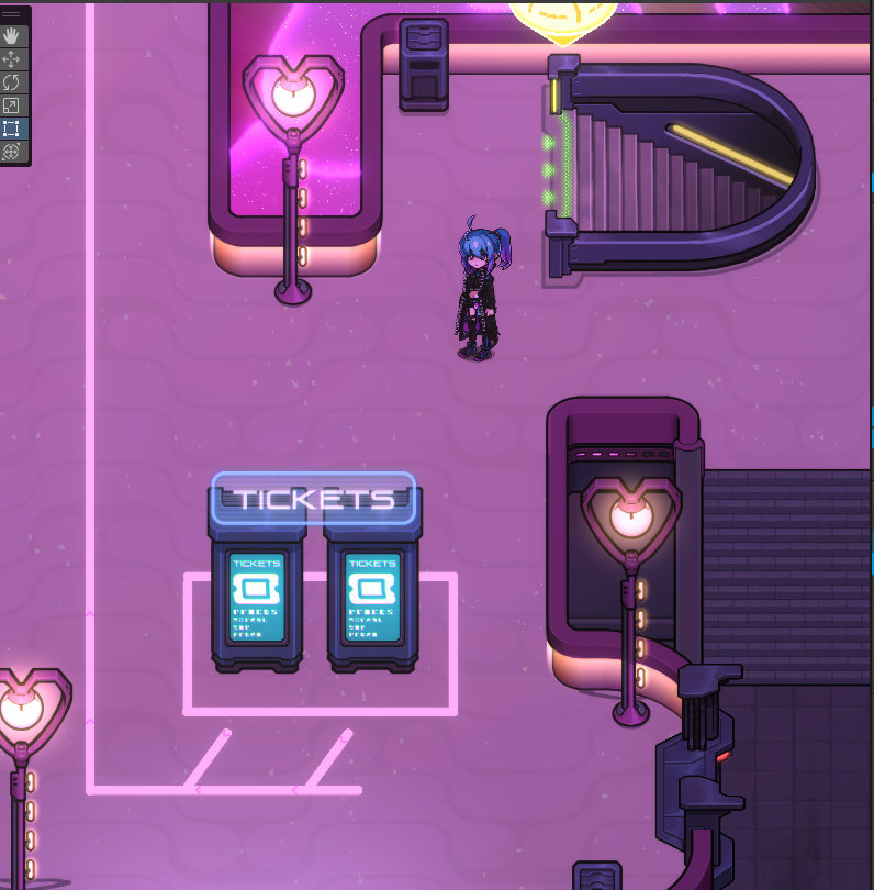 Worked on the borders a bit more and also tweaked sth on the lighting: The lighting of the lamps I feel should affect the floor, and the light source I set also lower to the foot of the lamp so it made sense spatially it falls off from its center position outward evenly, otherwise, when put on top, its offset fades from further north makes more sense with the floor. The general lit up ground I also reduced