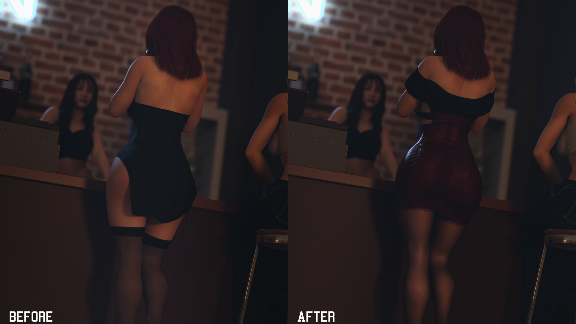 Scene eight: We're still working on it. In the last update, we mentioned that it might end up being a 200+ render scene. Well... It's currently around 300 and we're still working on it. While working on the scene we decided to change one of the character's clothes, which set us back a day, but in the end, we thought the new outfit suited the scene better. We also need to do some animation for it, but our plan is to skip the animation for now and get on with the rest of the scenes, then come back and do the animation when it's all done.