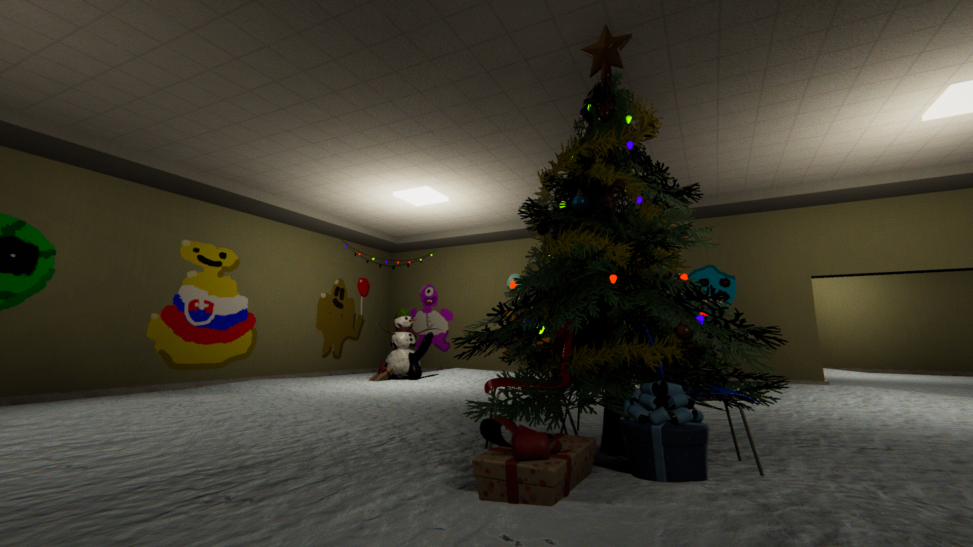 Christmas decorations and holiday-themed props have been placed throughout the affected levels. Festive lights help reshape the atmosphere, making corridors and rooms feel both familiar and freshly transformed.
