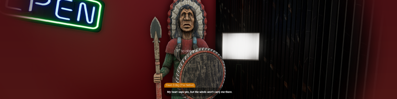 - First mission with "Yawn D Big", go take a look at the wooden statue of the Native American in the basement (I would like to make at least another one! It took me a day, so it is worth it while waiting for the VA)