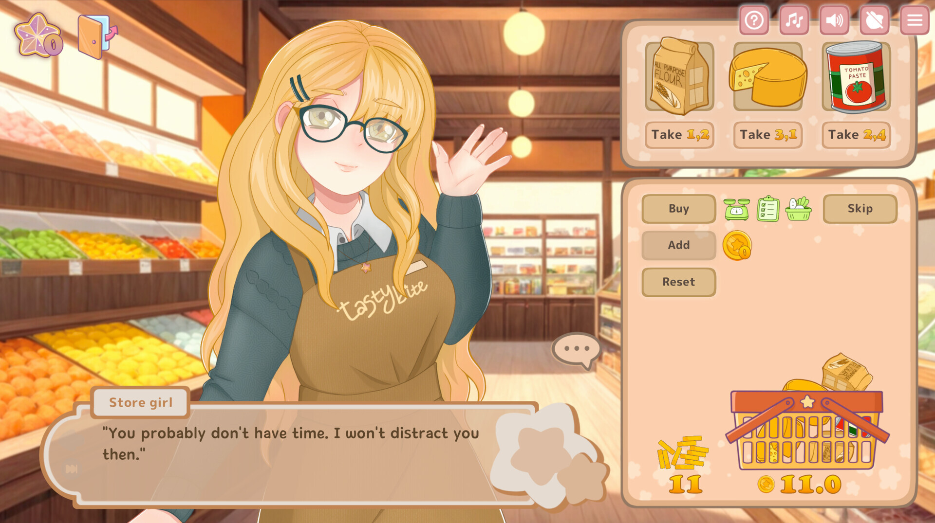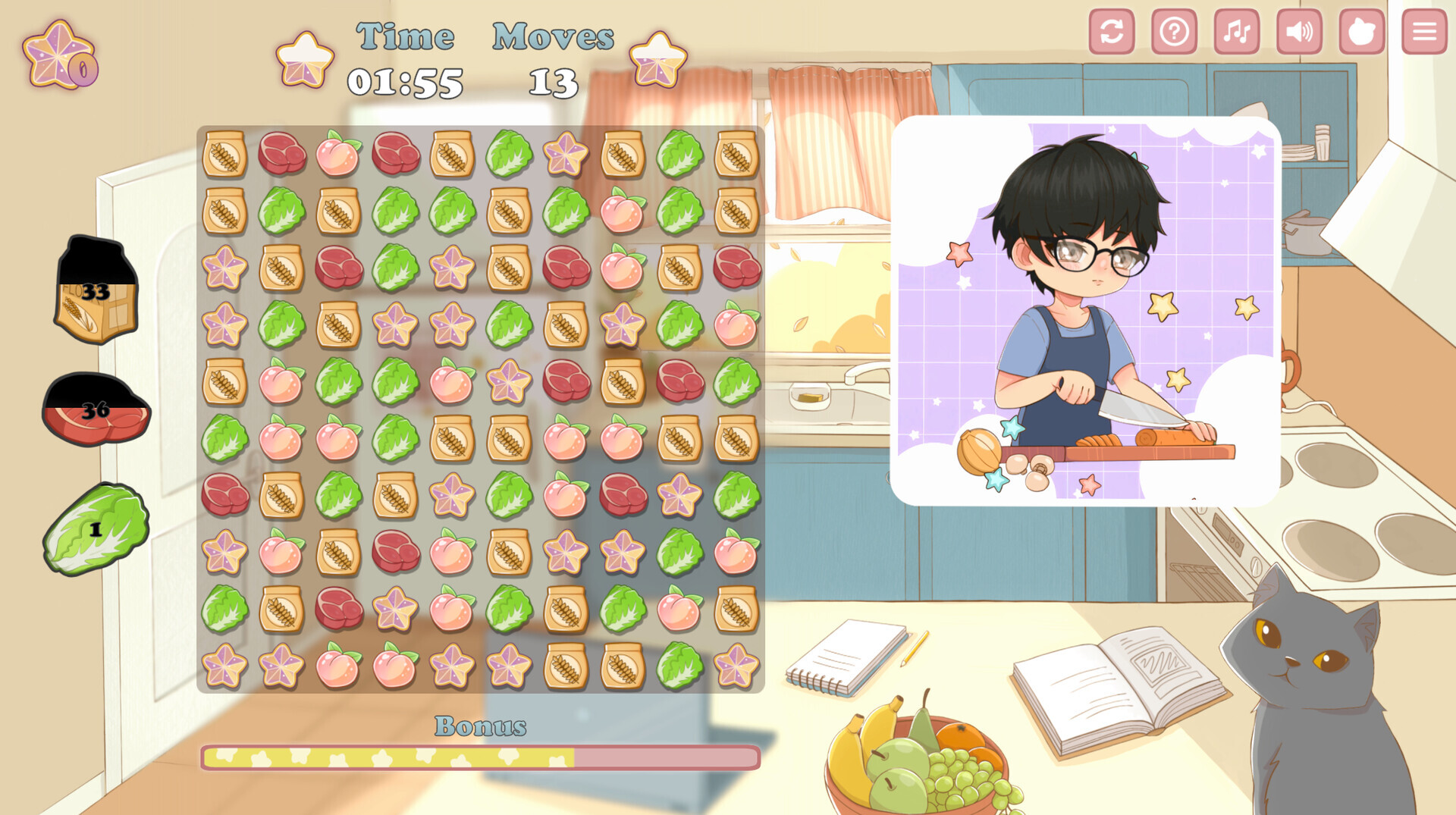 A cute and cozy game about cooking and dating. Cook different food in interesting games, and then spend unforgettable evenings with different consequences with cute girls. Comfortable and relaxing atmosphere with unique visual style, pleasant music and moderate difficulty.Characters for all tastes. All the girls have their own unique personalities that match the food they embody. Each has her own backstory, thoughts and concerns.