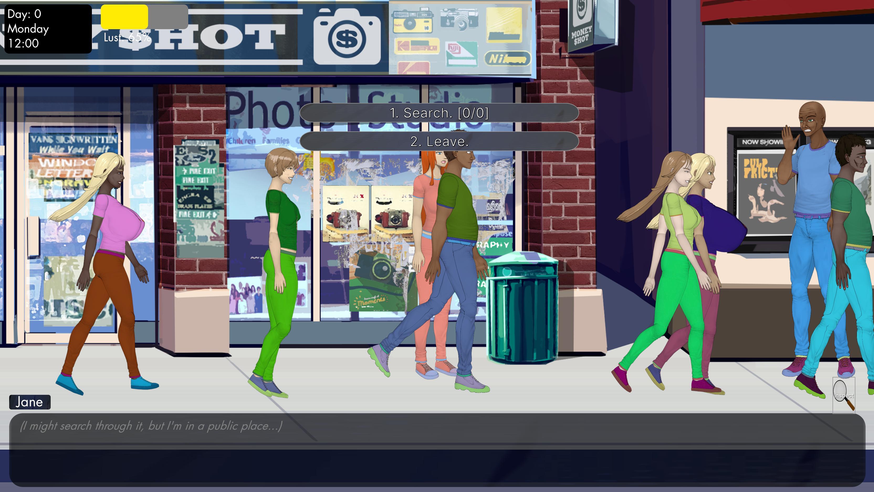I've set up Skill Checks for various things, and they are already in the game working, like NPC groping chance. I'm trying to make it all more natural and logical, with multiple factors involved to improve the overall flow. For example, Main Street has -25% base grope chance, meaning that if base chance from all calculations won't reach at least 25%, then groping will never happen, making Main Street relatively safe location. Unless Thug with high Libido & Lust spawns, which would be really rare, but of course possible. Making some NSFW content not locked behind Jane's Corruption as it used to be, and also not forcing it upon her, allowing her to avoid it altogether. But let her put some make up, use perfumes and wear mini skirt, and the situation will change. I will need to balance the numbers across the development and make sure that some stuff isn't too hard or too easy to trigger.