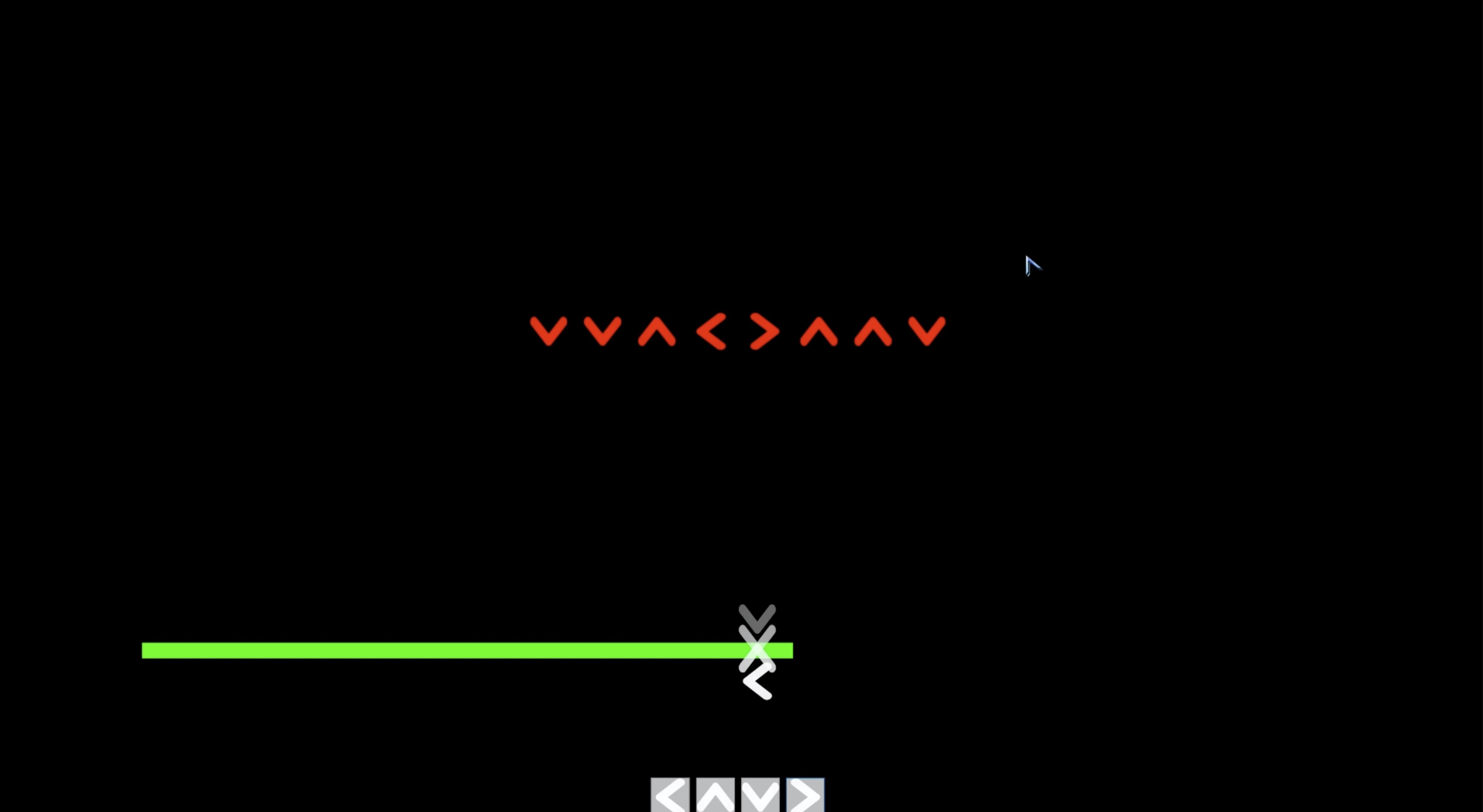 Tempo Mini-Game (Green) - Think of rhythm/music games. Arrows move from right to left, and you must press the correct key when they reach the hit zone. Speed, arrow count, timing window, and hitbox size scale with difficulty.