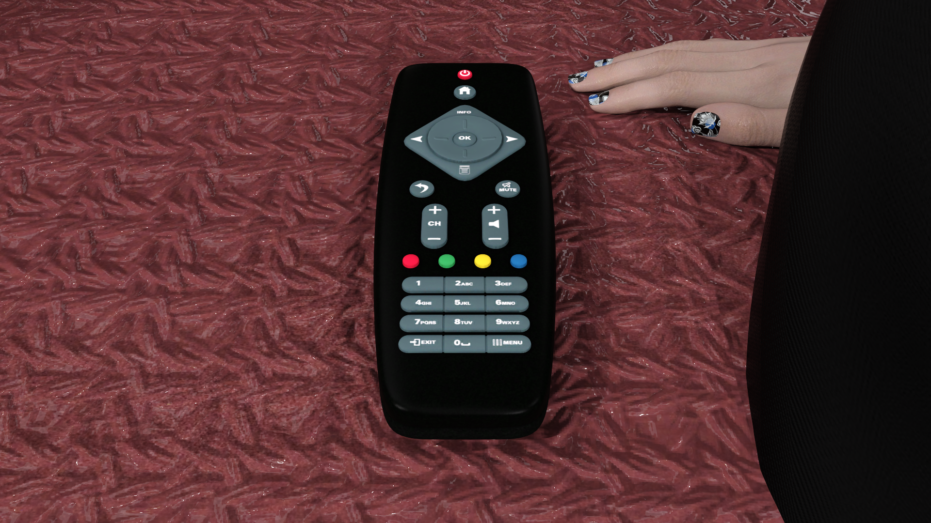 In this dialogue, you give her the TV remote, fulfilling her request, as she needs to replace the TV remote in Beatrice's room with the new one you just bought at the shop, as the one in Beatrice's room is defective.