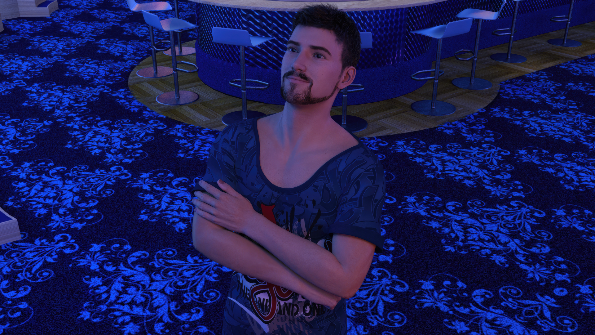 As part of our studies on the physics of certain parts of the female body, such as breasts and butt, we created an animation of Julia dancing Staying Alive on the catwalk in the middle of the bar.This small animation will be added to the game's gallery as extra unlockable content.
