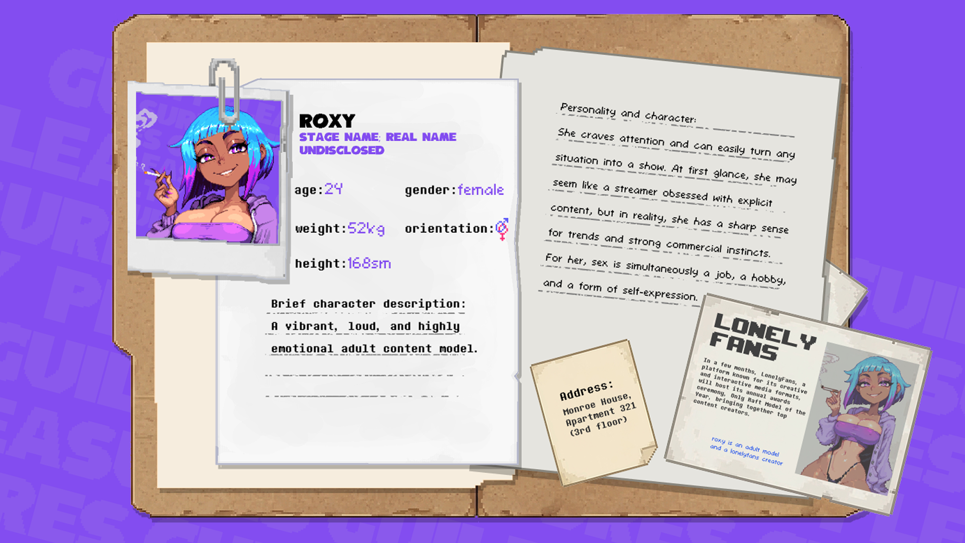 Hi! Today we want to introduce you to one of the characters of Guilty Pleasures, Roxy.