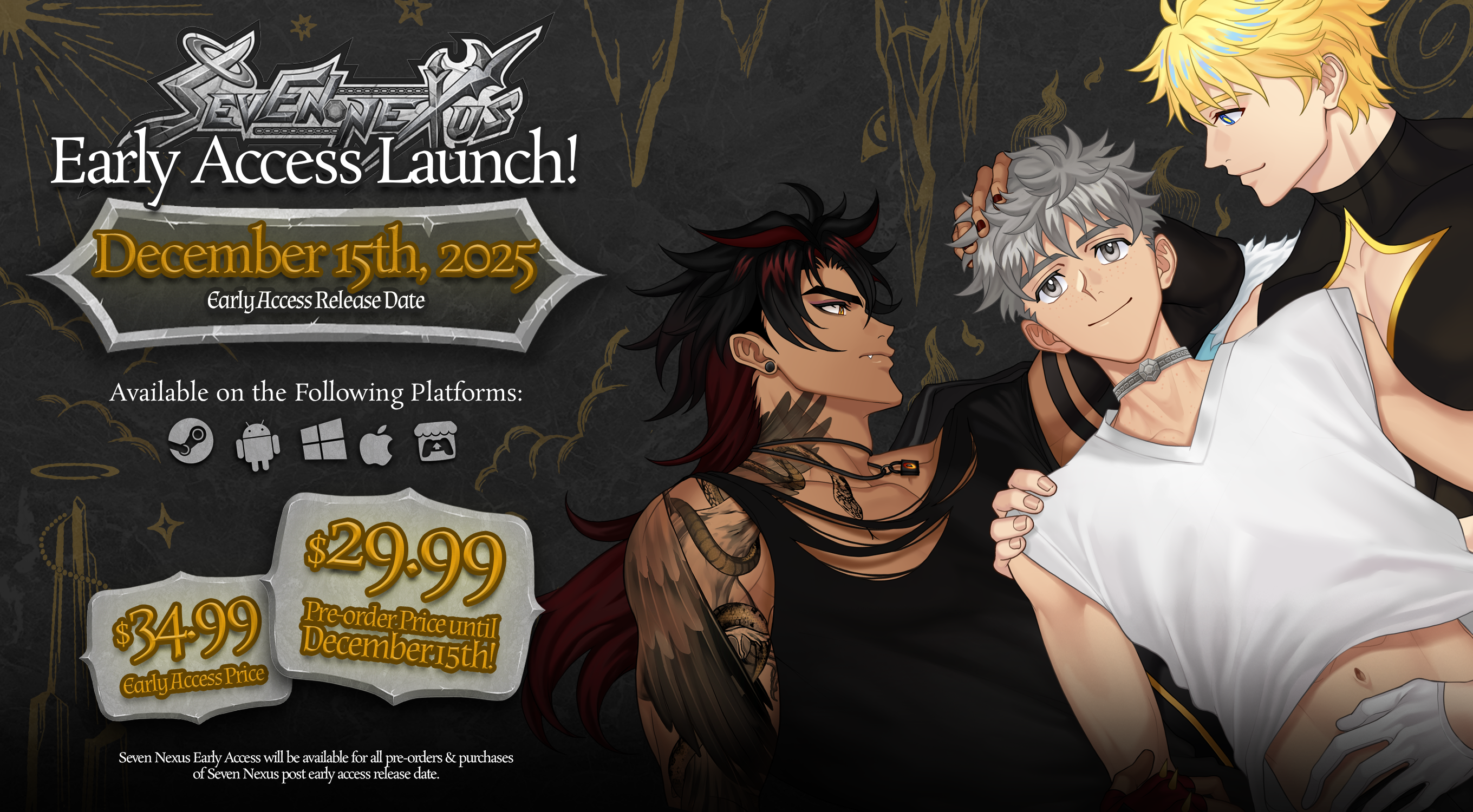The Seven Nexus Early Access will be available on our website, Steam, and Itch.io for PC, Mac, Linux and Android Devices! You can pre-order the game now for a discount – currently, Seven Nexus Preorders are $29.99, but once Early Access becomes available, the price will be increased to $34.99. Please take advantage of the lower price while you can, and pre-order your copy now!
