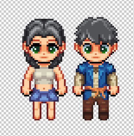 Here we have a look at the default male and female clothing for the player character, as well as the three skin tones that are being included as variations in scenes with the girls: