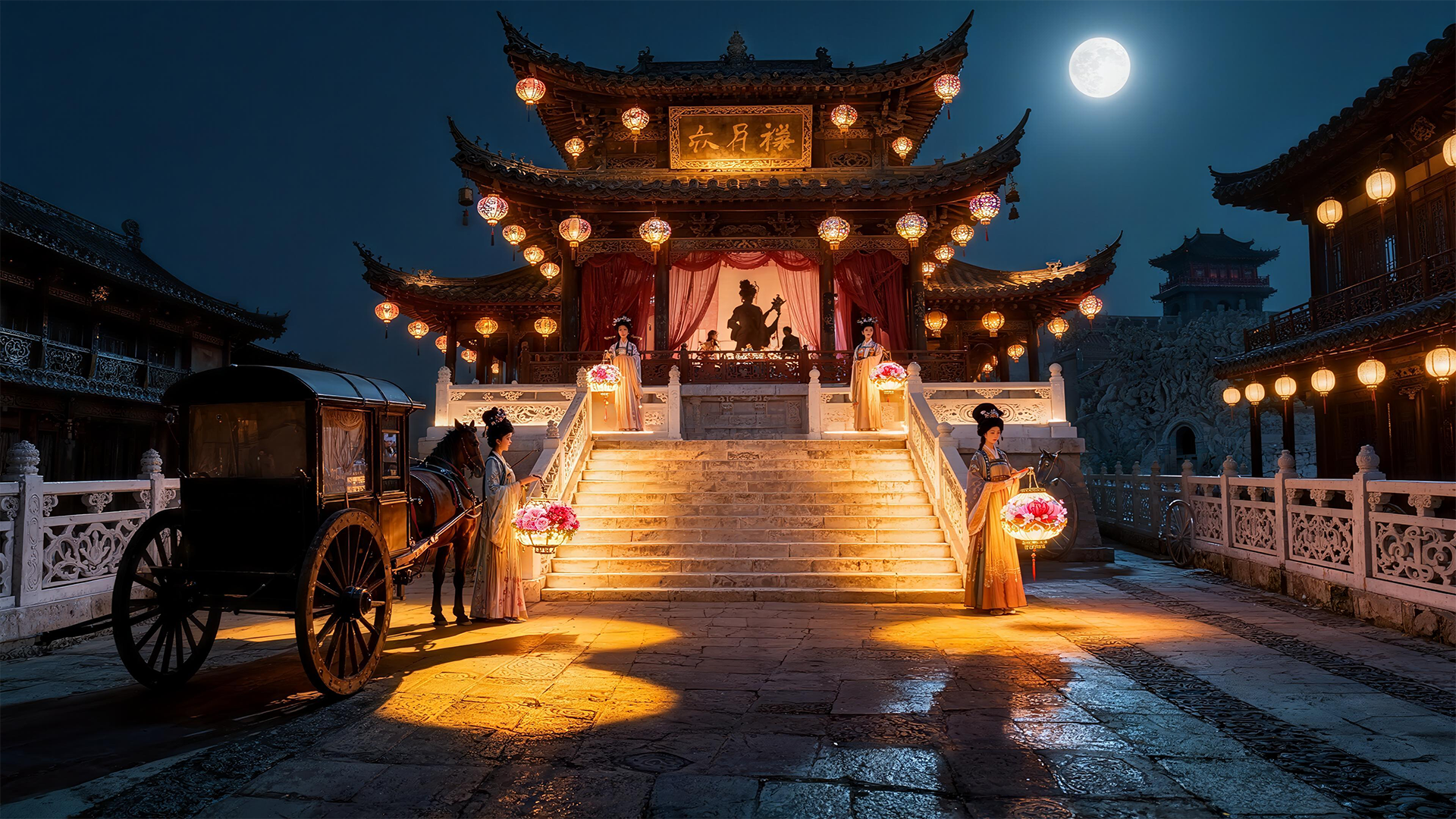 5. Diao Chan concealed her identity and became a celebrated courtesan in the Autumn Moon Pavilion. From then on, Emperor Ling of Han frequently visited the Autumn Moon Pavilion, captivated by her, and lingered, reluctant to leave.