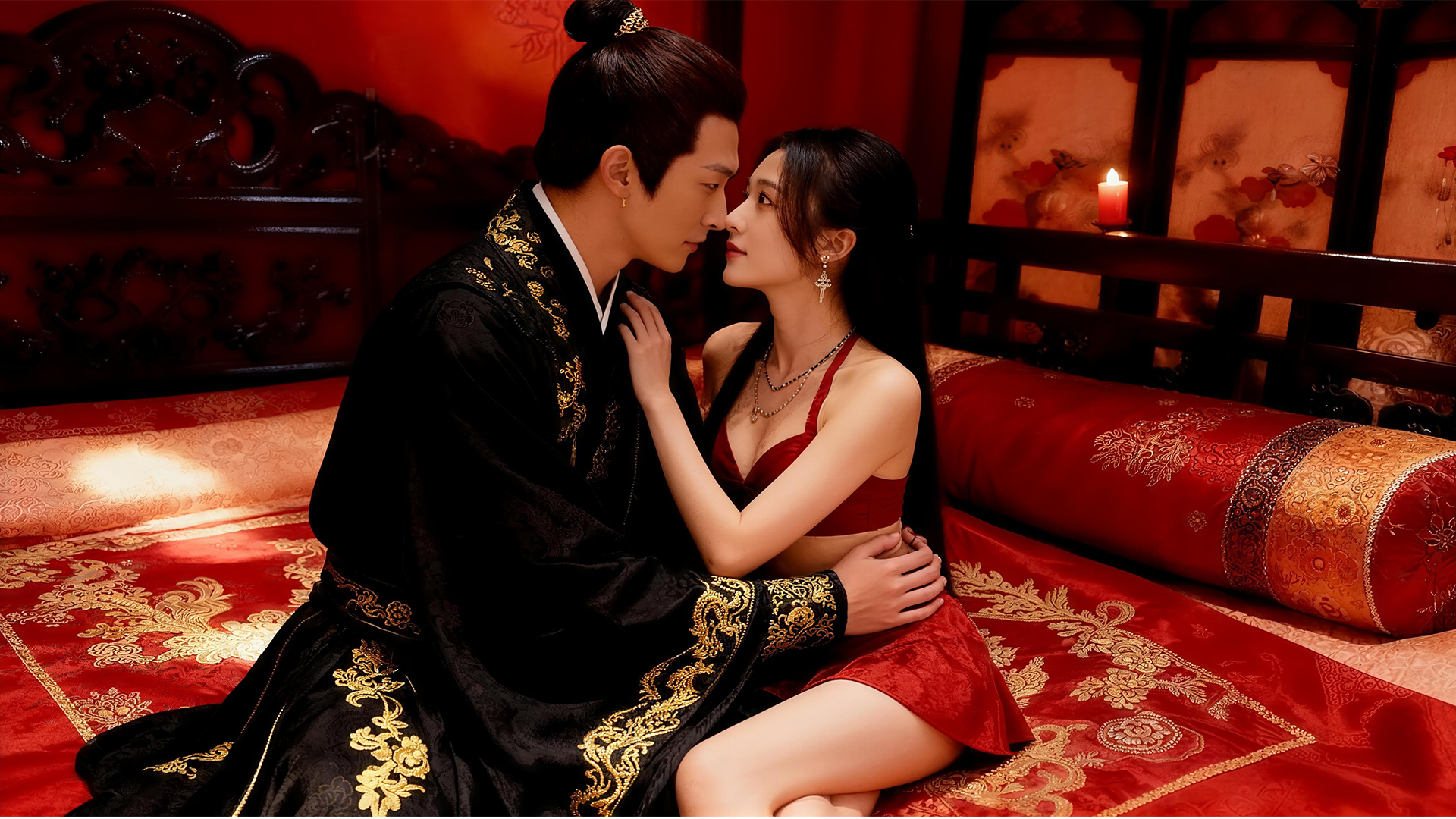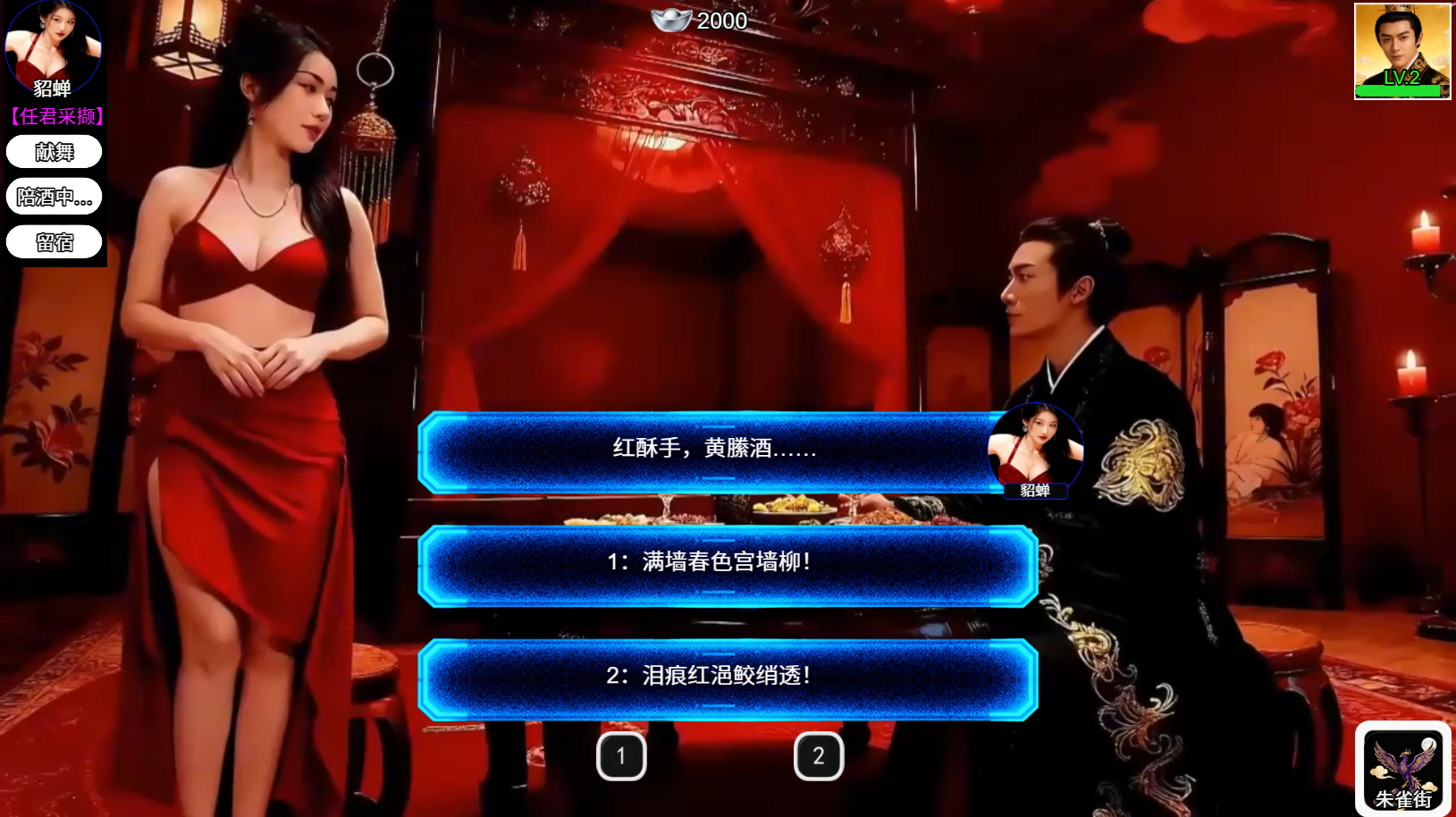 8. Ultimately, he won Diao Chan's heart, allowing him to stay overnight in the pavilion and share an intimate night with her.