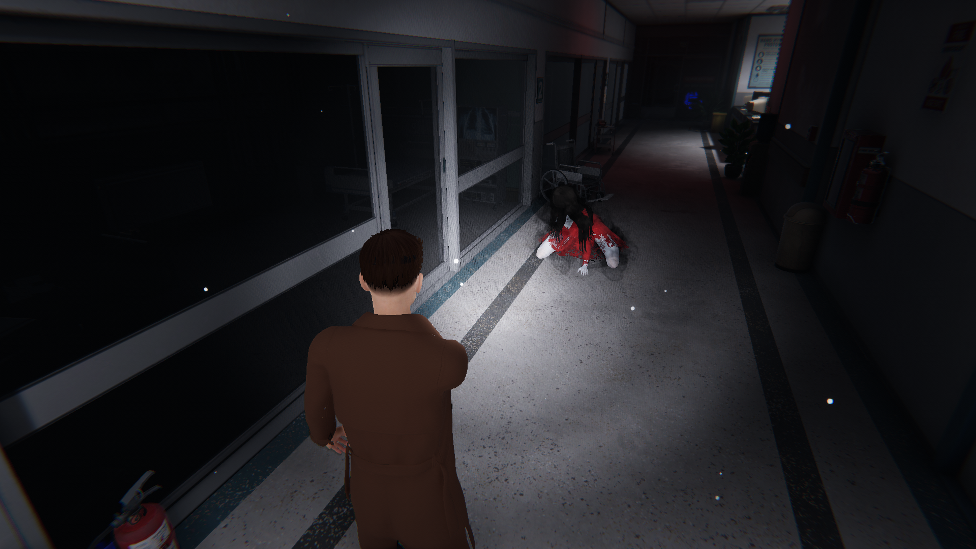 This project marks a new challenge for us in both theme and gameplay. The story follows a shady, small-time exorcist who makes a living scamming people with cheap tricks. In pursuit of a large payout, he accepts a job that leads him into an abandoned hospital—only to come face-to-face with real female spirits haunting the place.