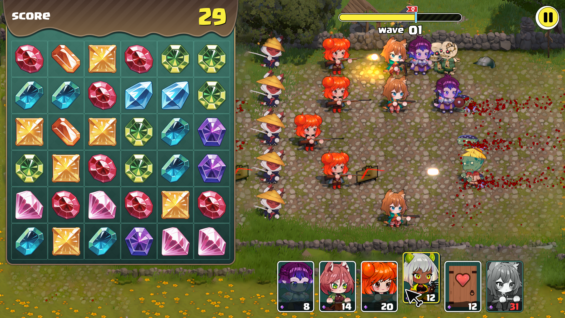 Dive into a world where RTS, Tower Defense, and Match-3 fuse into one swirling storm of battles, upgrades, and enchanting characters! Fights on two battlefields at once, boost your valiant warrior maidens’ powers, and repel endless hordes of vicious zombies thirsting for chaos – and far darker things…