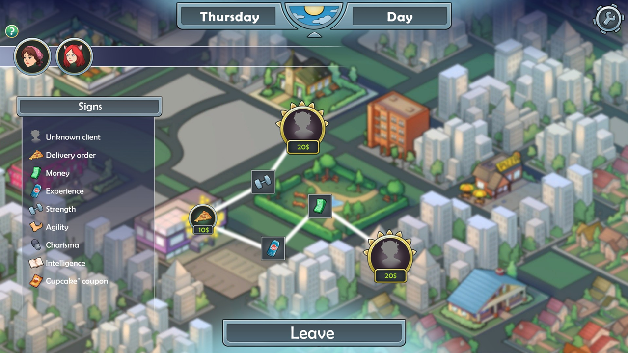 • 3 clients you can spend time with while working as a courier. Delivering pizza isn’t just background activity: it’s a series of separate situations filled with humor and flirtation.
