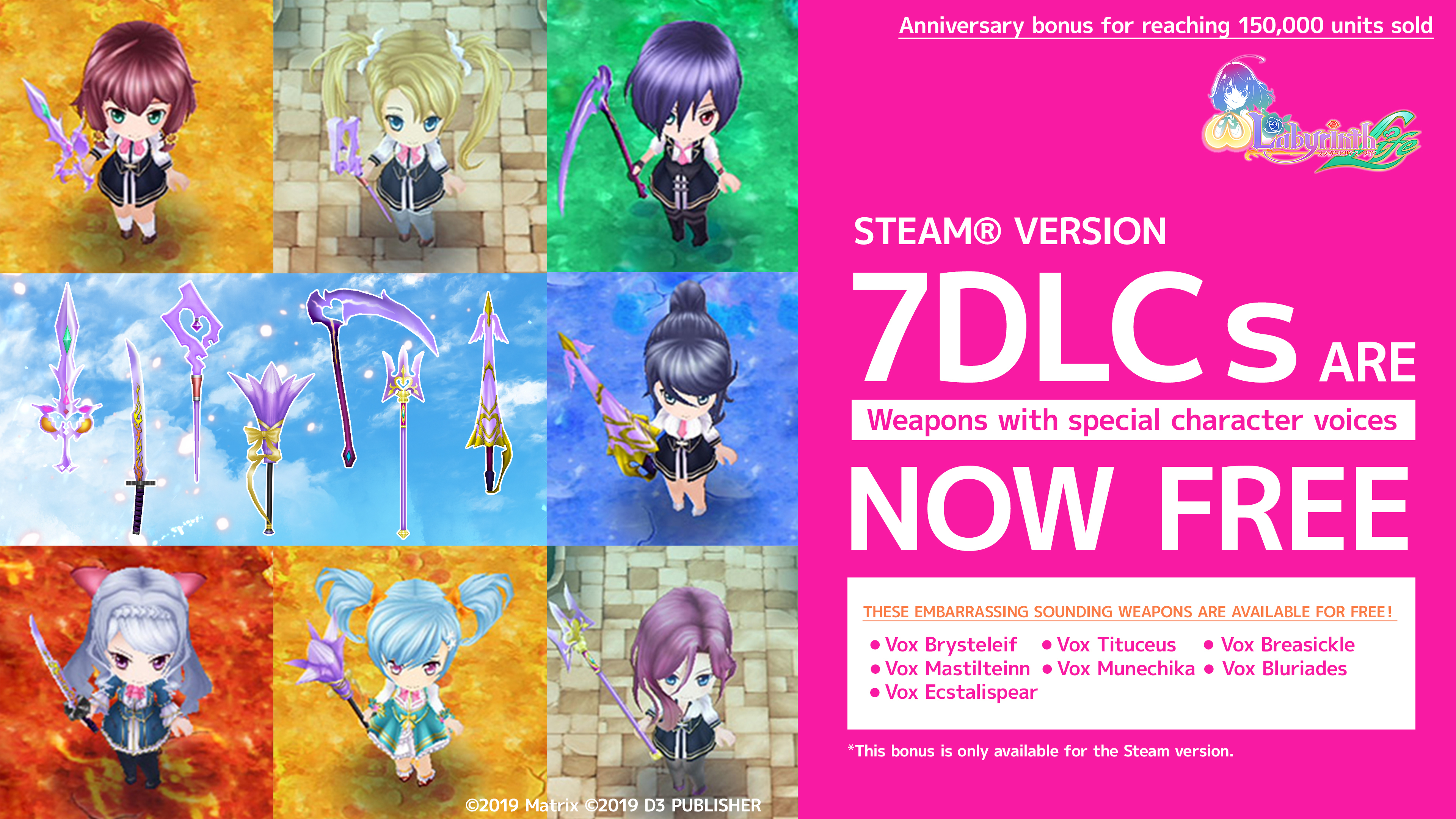 Thanks to your generous support, we are pleased to announce that the cumulative sales of “Omega Labyrinth Life” have reached 150,000 units. We would like to express our sincere gratitude to all the users of this title and to all those who have given us their support and encouragement.