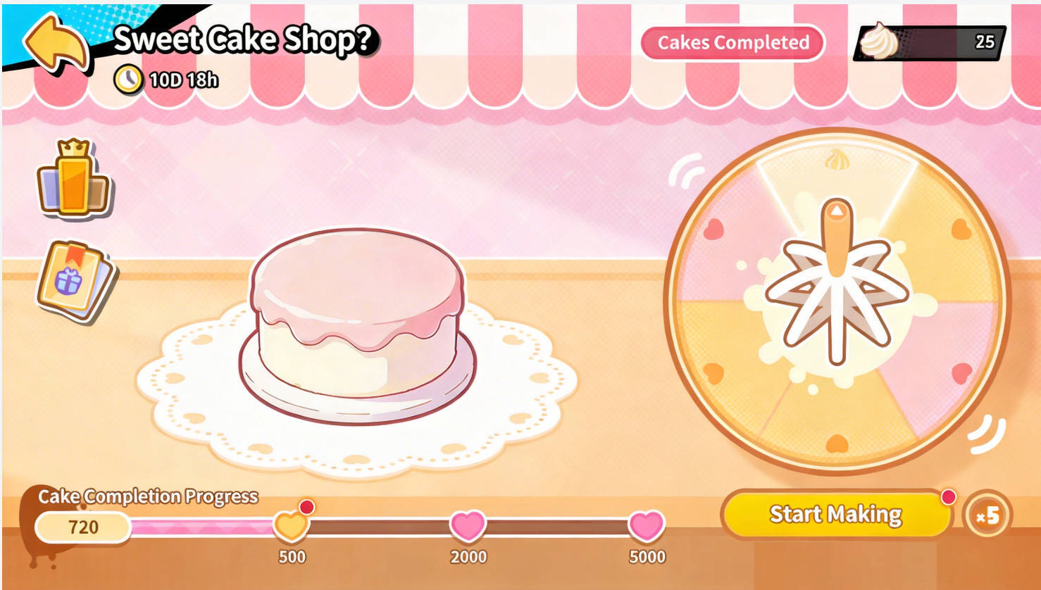 Bake Valentine’s Cakes: Use Cake Tickets to bake cakes—finish a cake to receive generous rewards!