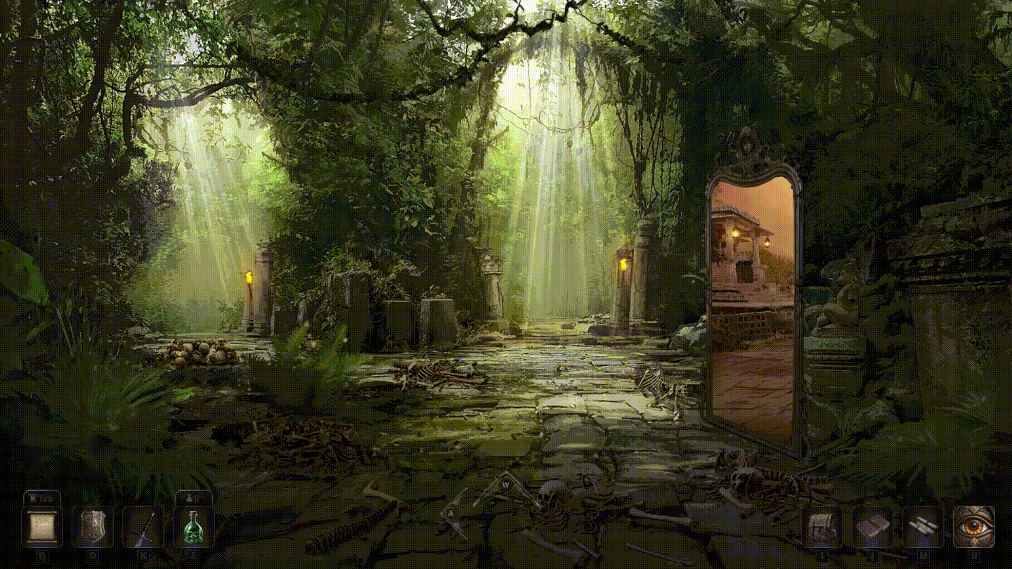 - game locations with points of interest - dungeon, light and dark forest, jungle.