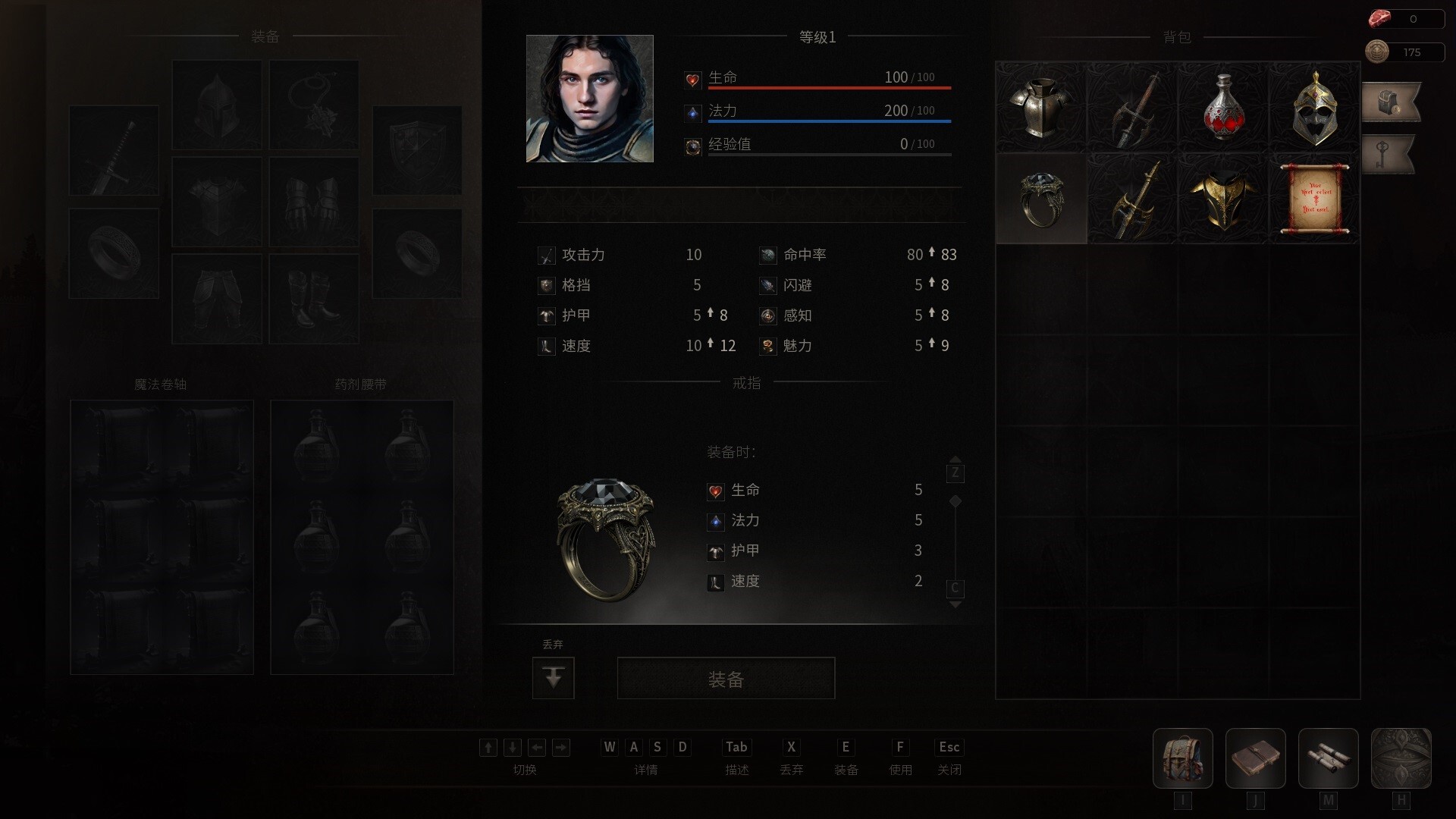 - magic - 5 elements, represented by spells of varying strength.