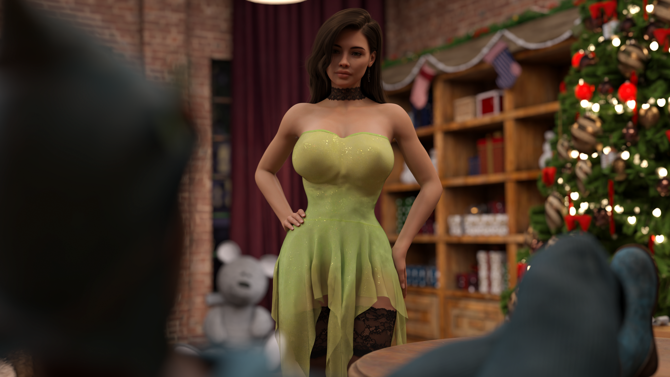 This DLC is a standalone story, which means it isn’t directly connected to the main plot (though the same characters appear, so it’s still best to play at least some of the main game first to know what it is about). We’ve created a completely new world with free roam, featuring 10 new holiday-themed locations. All characters get new backgrounds, there are almost 3,000 new renders, around 30k words of script, lots of animations, and professional SFX recorded by real people (girls moaned especially for you).. There are also new achievements and 27 special holiday wallpapers to collect. So there are going to be plenty of things to do! We don’t have much time left, but we still have a lot of work to finish to make sure everything is perfect. I really hope we can be ready by December 12th and won’t have to change the deadline, but it all depends on how well things go this week. So without wasting time, I’m going back to work - Sunday is not a day for rest :D