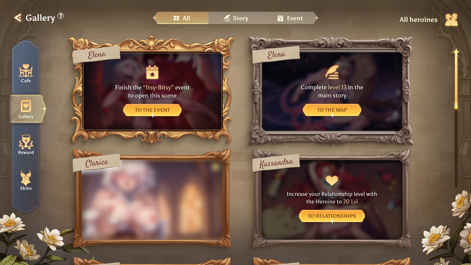 Another system we worked a lot on recently is player collection, specifically scenes gallery. As we mentioned before, we want to make sure players can easily figure out how to get all the desired content and also enjoy their time going through the collection.