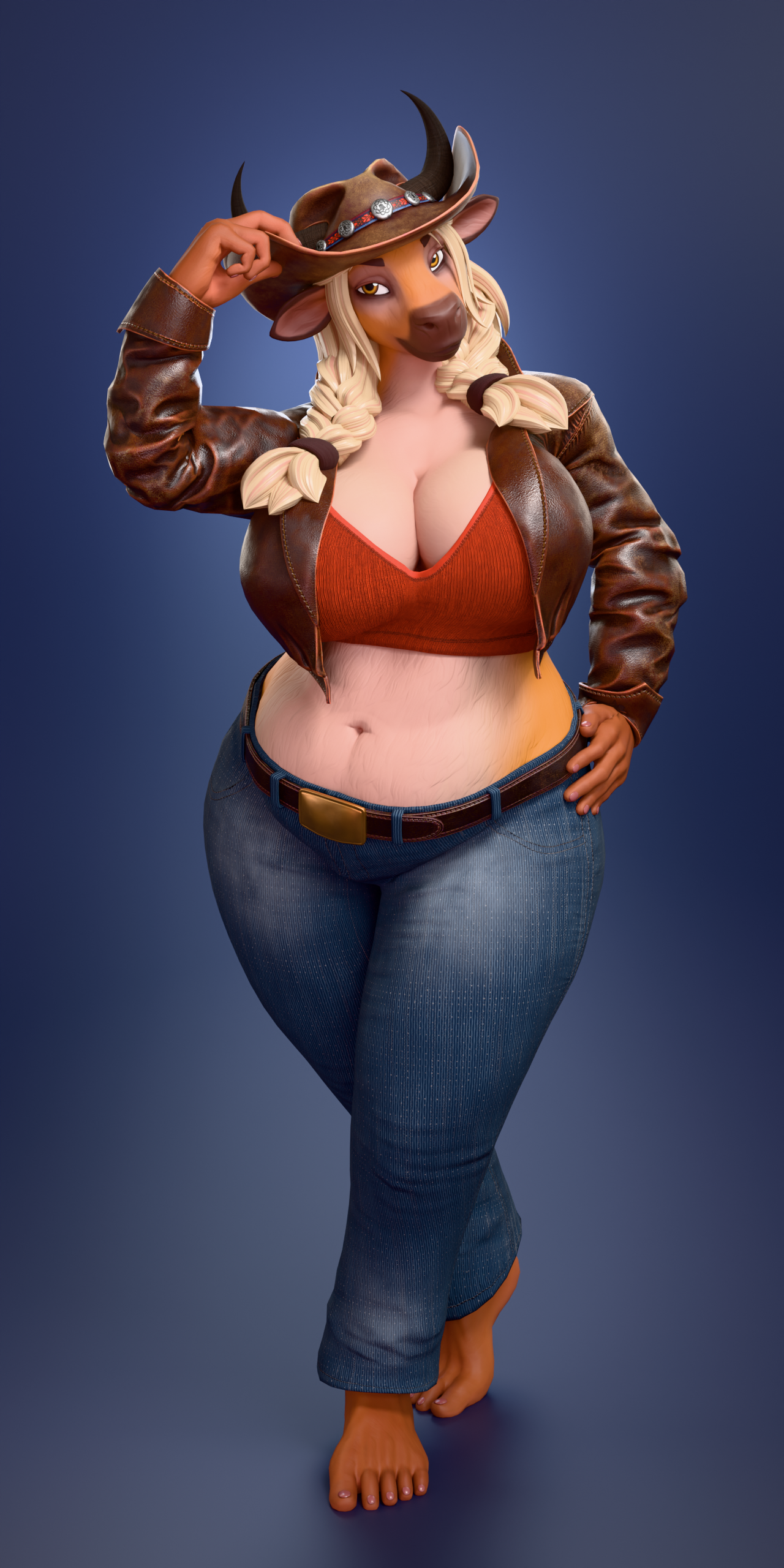 We're already cooking up some fun animations with her that take advantage of her substantial... assets. There'll be a version with udders as well!