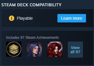 In other news, we recently got confirmation that ToLLA was reviewed for the Steam Deck by Valve, and has received the Playable rating. This means you can run it on the Deck! You can find additional info by clicking "Learn More" on the game's Steam page, right above the achievements section...