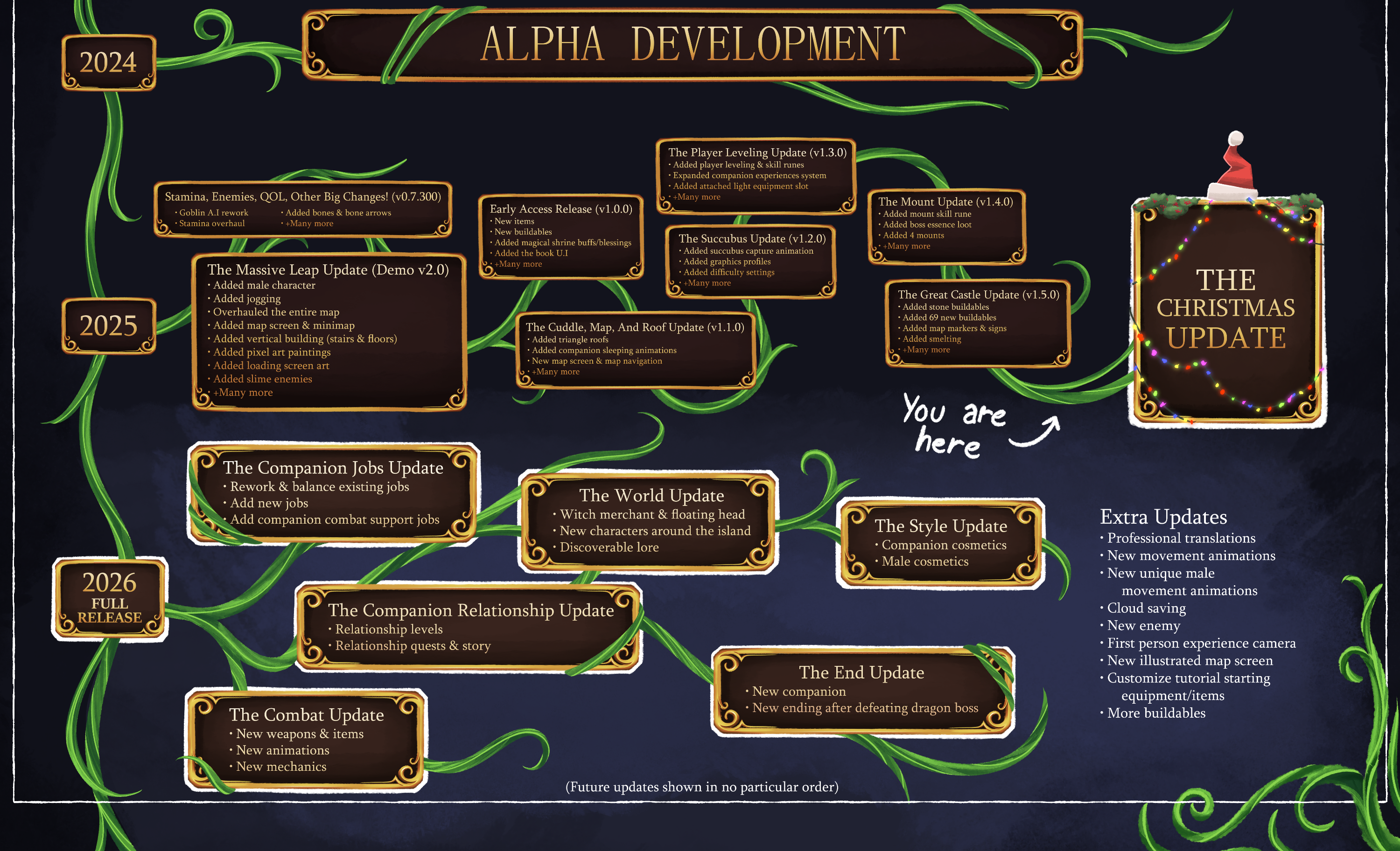 This means the next major update will be in January instead of December. But we wanted to make sure to also release new content this month so we'll be releasing a bonus Christmas update before the end of the month. The update will likely release after Christmas day, but we'll try to finish working on it sooner!